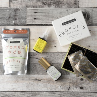 プロポリスのど飴、プロポリススプレータイプ、液タイプ、丸粒タイプと、用途によってお選びいただけるさまざまな形状をご用意しております。