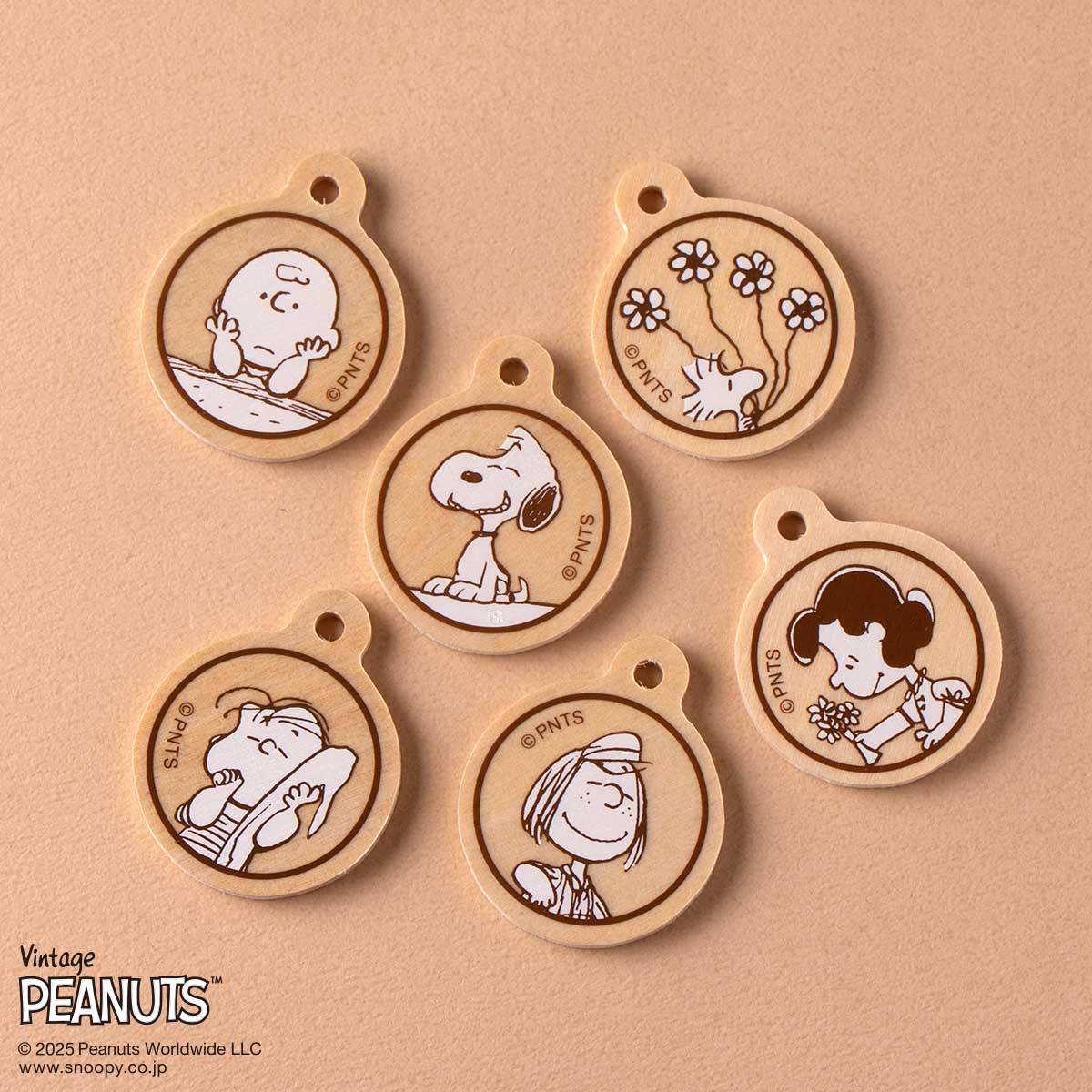 「SNOOPY PURE&NATURAL PRODUCTS」シリーズには、ランダムで6種類のウッドチャームが付属します。