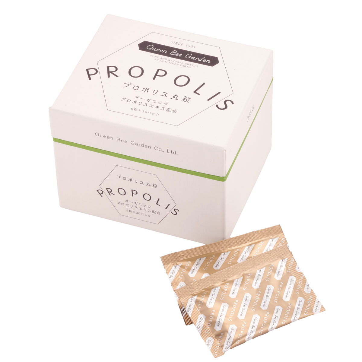 プロポリス360mg(1パック6粒当たり・原塊換算)とはちみつと、身体にやさしい国産原料で作った丸粒です。